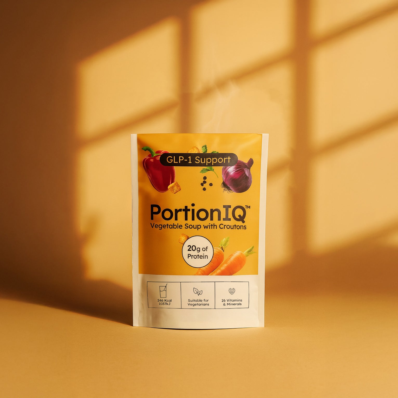 When appetite dips, nutrition shouldn’t. PortionIQ Vegetable Soup with Croutons delivers warming, satisfying nourishment in a simple, ready-to-prepare savoury portion. Crafted to support GLP-1 users and anyone looking for smarter, nutrient-dense meals, each serving provides high protein, high fibre, and